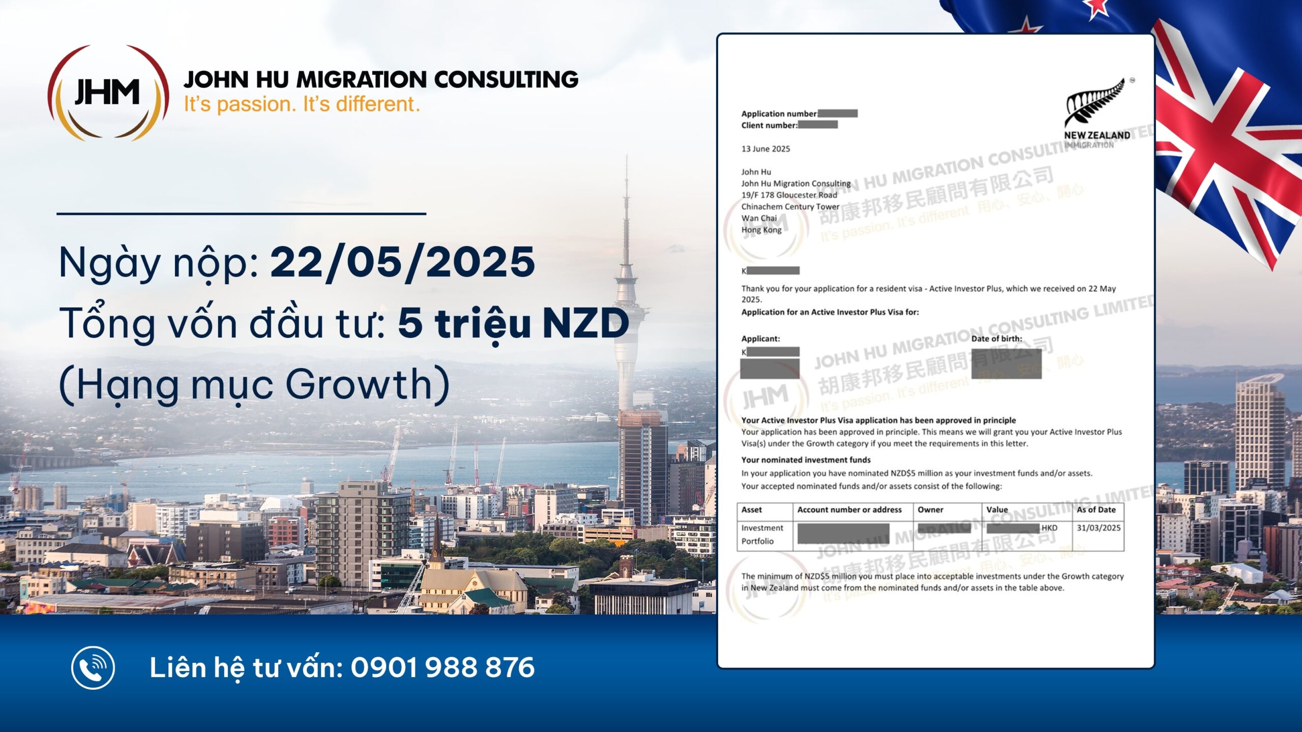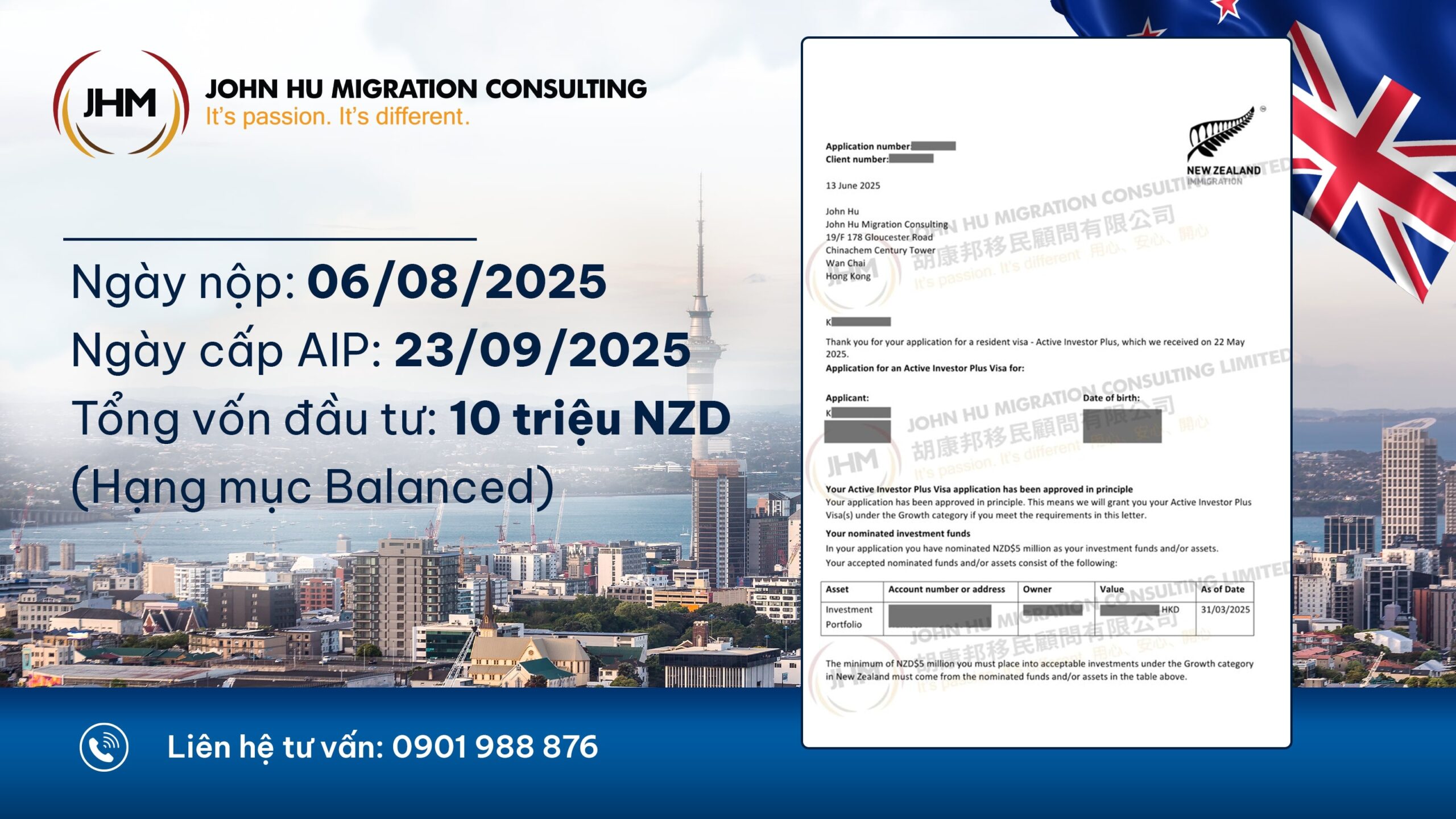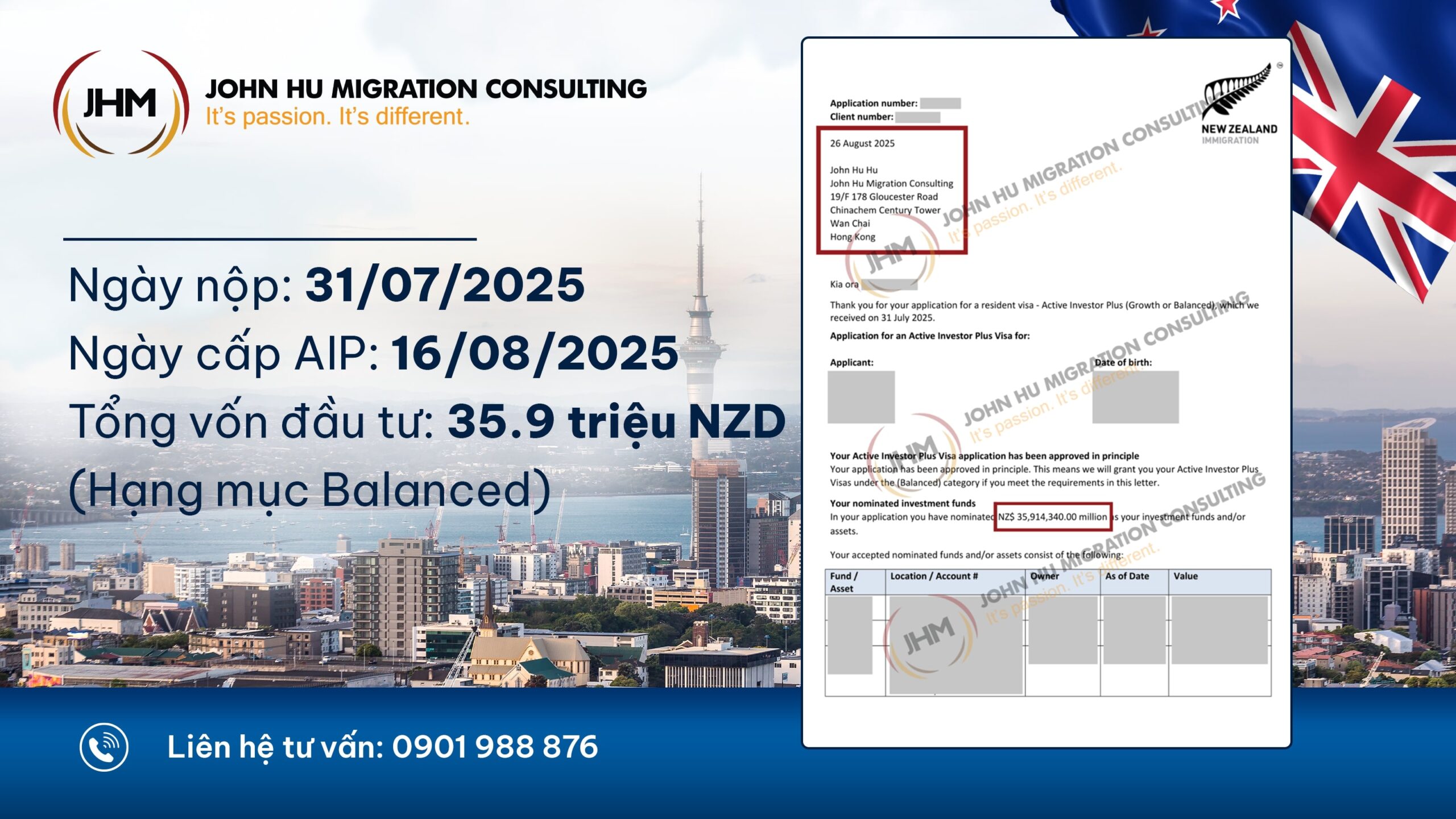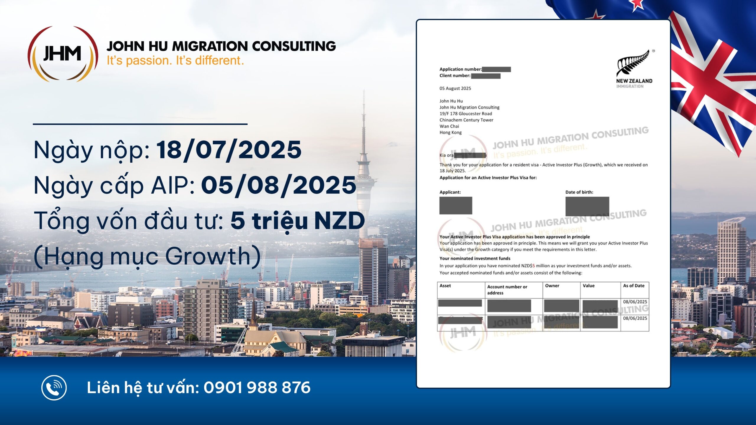 John Hu Migration – đơn vị tiên phong trong lĩnh vực tư vấn đầu tư định cư với 2 cố vấn được cấp phép bởi Chính phủ Úc & New Zealand – đã đạt kỷ lục 8 thư chấp thuận đầu tư (Approval in Principle – AIP) cho khách hàng chỉ trong vài tháng đầu sau khi chương trình mở lại. Đây là con số dẫn đầu trong khu vực, thể hiện năng lực xử lý hồ sơ chuyên nghiệp và kinh nghiệm thực tiễn của đội ngũ John Hu Migration trong chương trình định cư New Zealand.